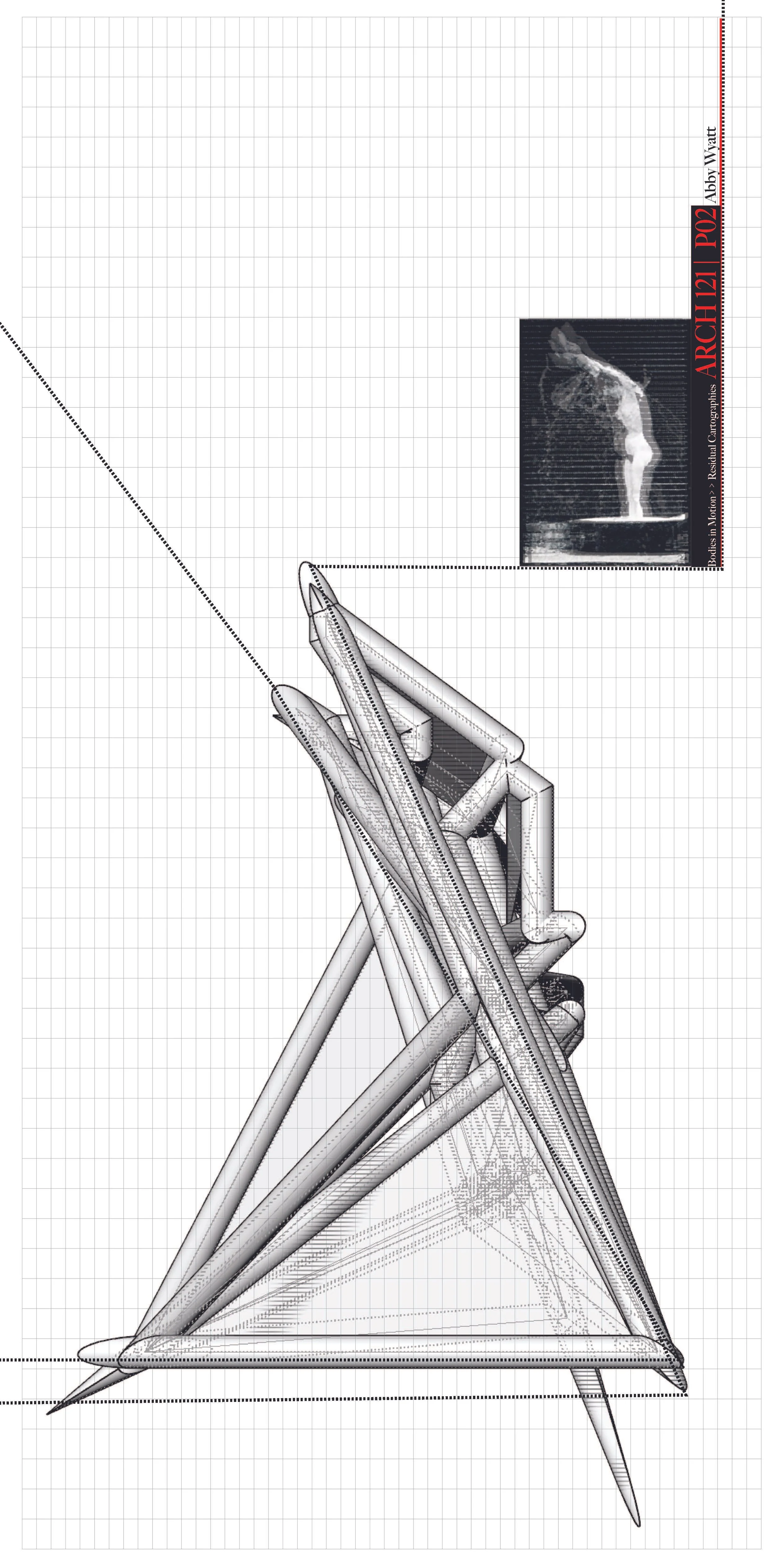 The transformation of Muybridge Structure into its final three-dimensional representation was driven by an exploration of movement as a spatial agent, focusing on the human figure’s relationship to form. Grounded in the theme of design and the human body, the project leveraged digital tools (Illustrator, Photoshop, and Rhino) alongside analog collage and photography techniques to map and analyze recorded body movement. By breaking down the concepts of frame, sequence, and interval, and drawing inspiration from pioneers like Muybridge, the process reinterpreted sequential diagrams of movement into layered spatial constructs. This hybrid workflow not only captured the dynamic interplay between body and space but also redefined how movement informs the structure and identity of design.