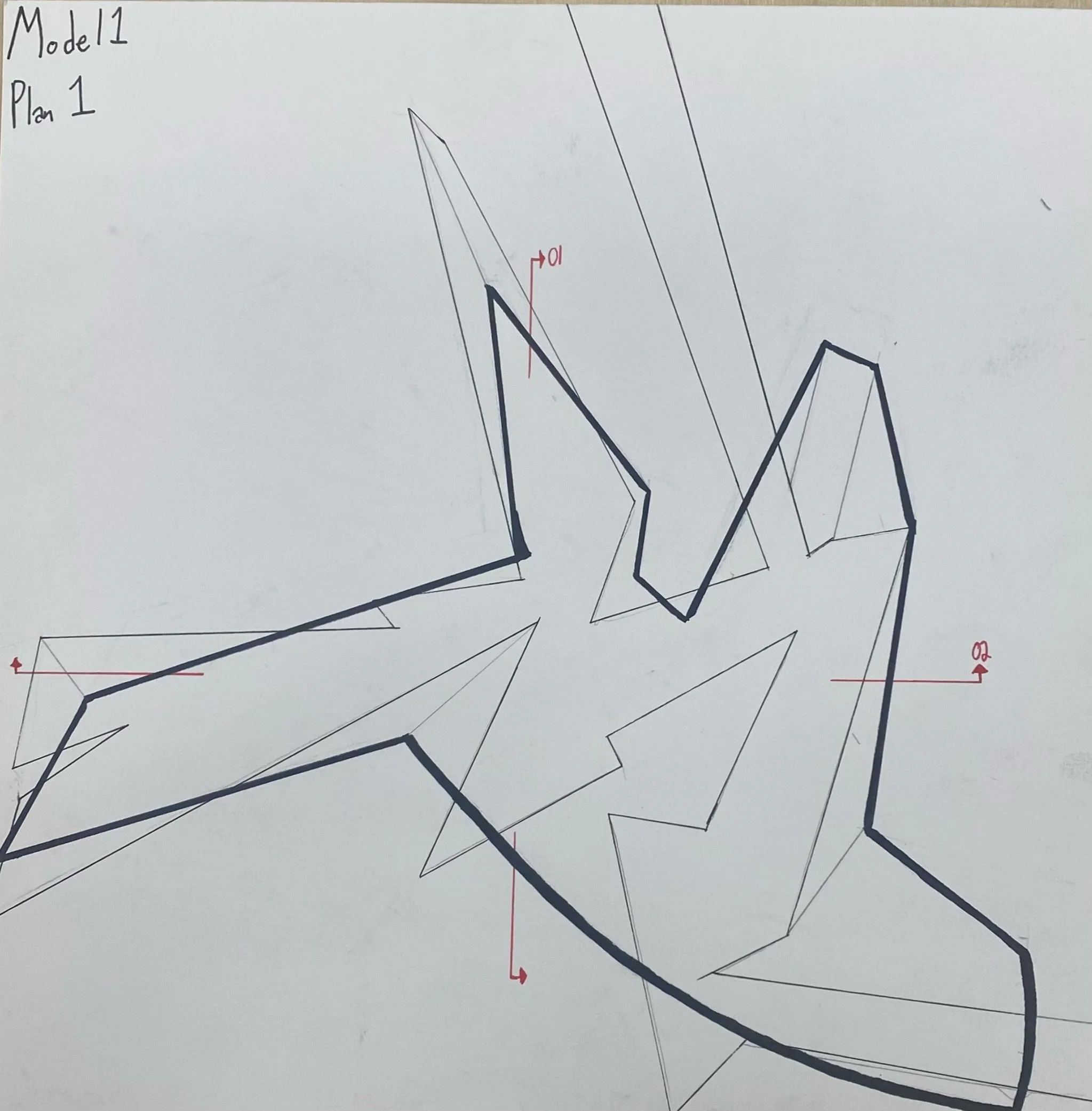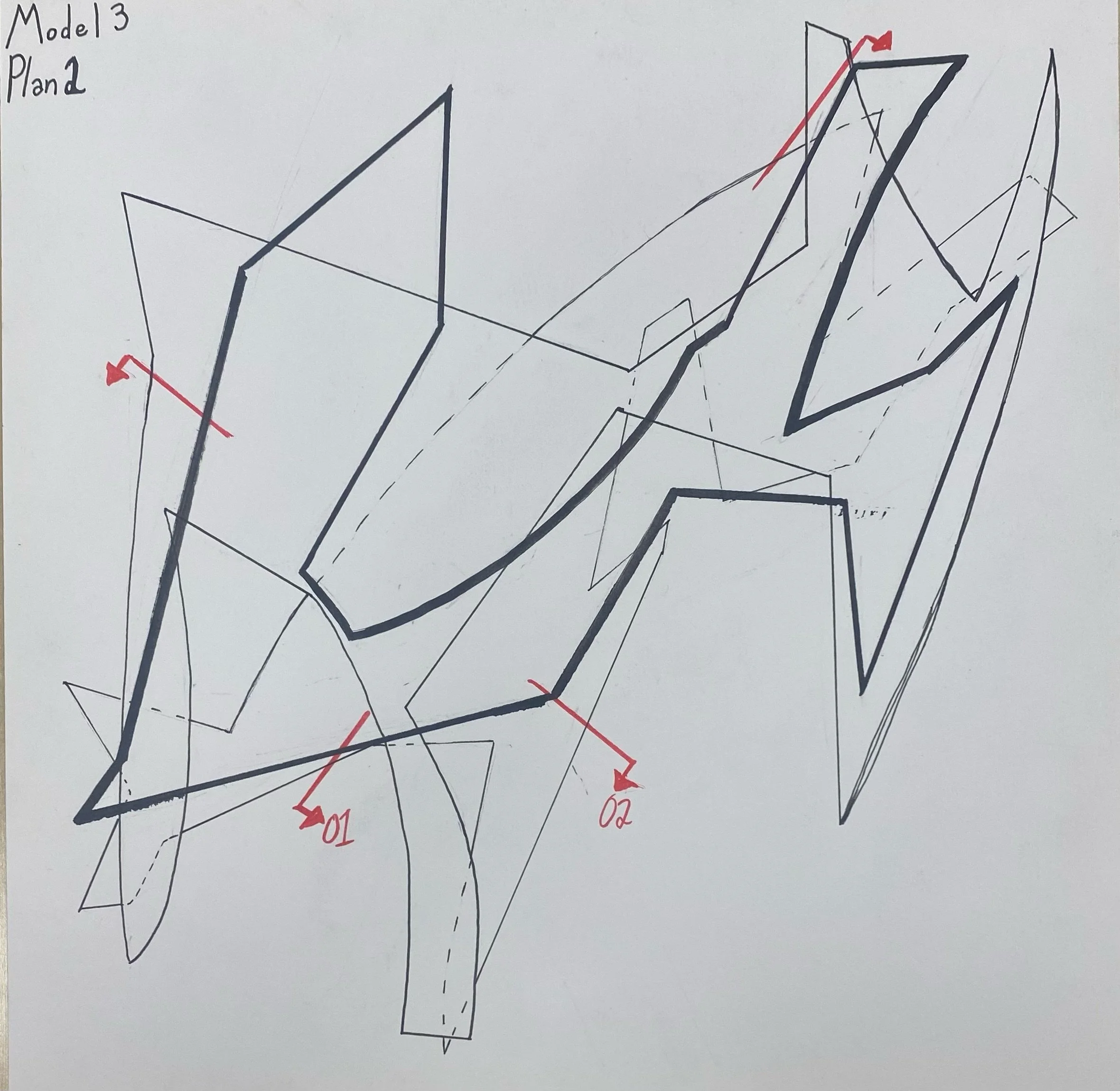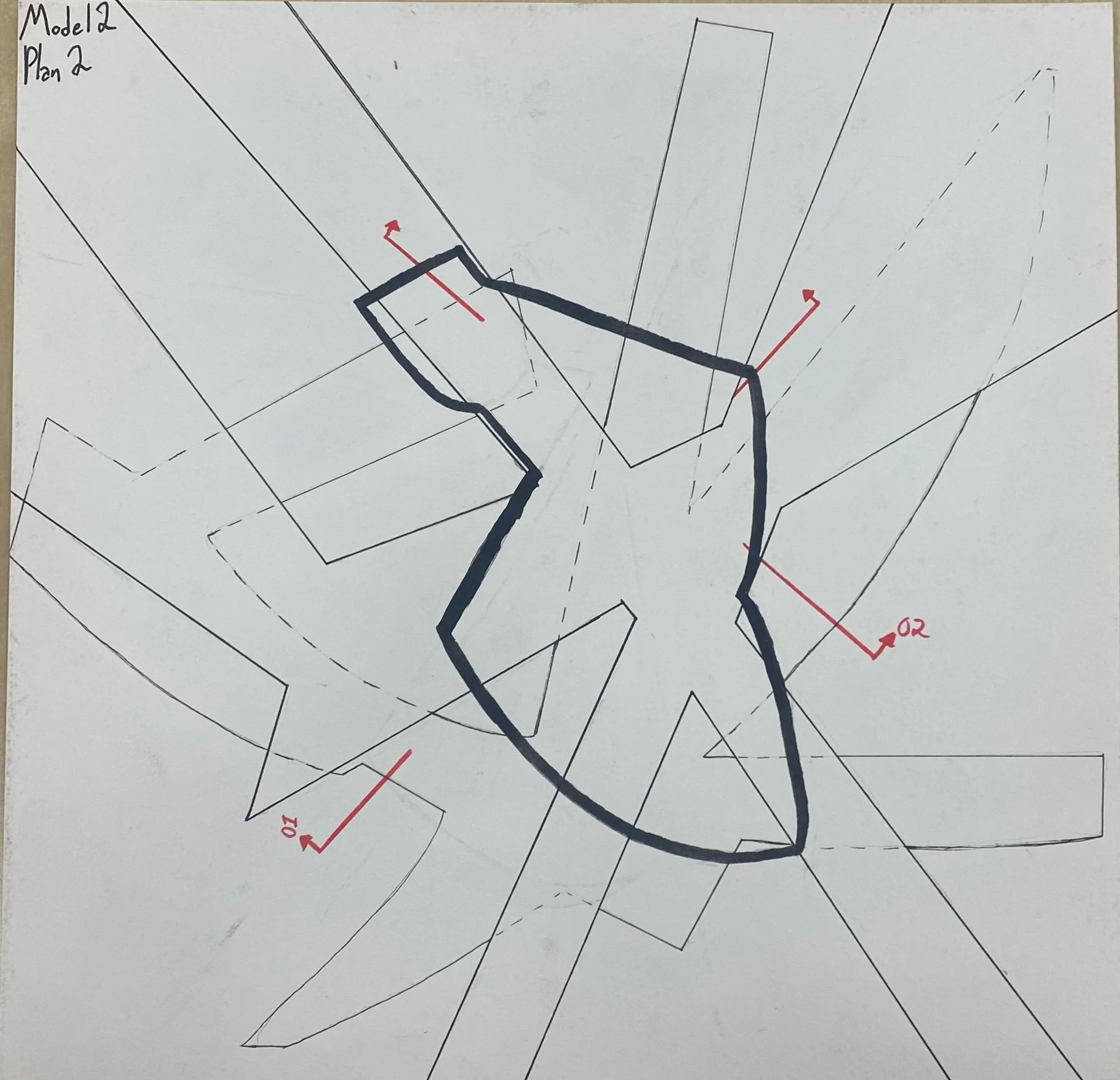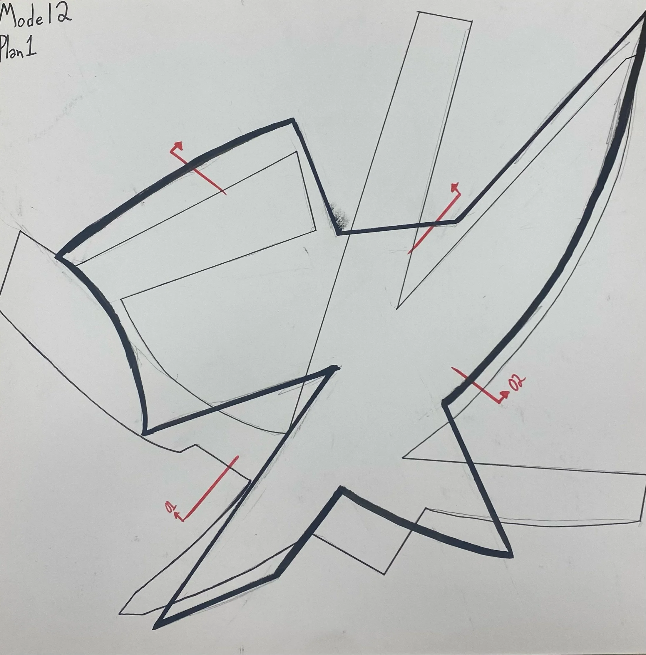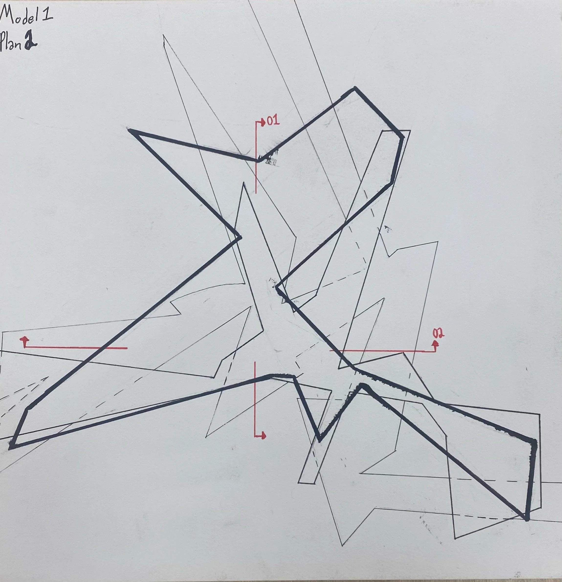 From this flower we were urged to, what we didn’t know at the time, make diagrams. From these diagrams we created simple forms that were then turned into 3d representations. Then final we used those 3d models to create out 1st plans and sections ever.